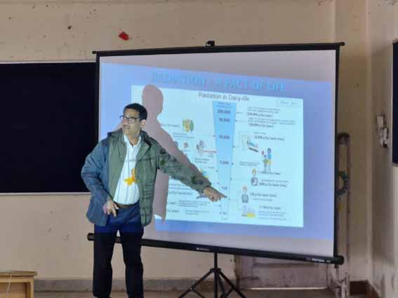 डिग्री कॉलेज धर्मशाला के प्रयास भवन में रमन सोसायटी द्वारा आयोजित डीएई (Department of Atomic Energy) आउटरीच कार्यक्रम में मुंबई स्थित भारत के प्रतिष्ठित भाभा परमाणु अनुसंधान केंद्र (BARC) से आए वरिष्ठ वैज्ञानिक डॉ. एस. के. मंडल (Scientific Officer-H) और डॉ. सतेन्द्र (Scientific Officer-G) ने विद्यार्थियों को विज्ञान एवं अनुसंधान की दिशा में प्रेरित करने वाला उद्बोधन दिया। डॉ. मंडल ने परमाणु ऊर्जा की भूमिका पर विस्तृत चर्चा करते हुए कहा कि परमाणु ऊर्जा केवल ऊर्जा का स्रोत नहीं बल्कि भारत के समग्र विकास, स्वच्छ ऊर्जा, कृषि, चिकित्सा और औद्योगिक प्रगति का एक मजबूत आधार है, जो राष्ट्र को नई ऊंचाइयों तक ले जा रही है। इसके बाद डॉ. सतेन्द्र ने विद्यार्थियों को डीएई एवं बार्क में उपलब्ध करियर अवसरों के बारे में महत्वपूर्ण जानकारी दी और बताया कि भारत विज्ञान व तकनीक के क्षेत्र में तेजी से वैश्विक नेतृत्व की ओर बढ़ रहा है, ऐसे में जिज्ञासु और प्रतिभाशाली युवाओं के लिए अनुसंधान के क्षेत्र में अपार संभावनाएँ हैं।