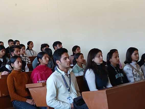 डॉ. नड्डा ने उपस्थित विद्यार्थियों और प्राध्यापकों को योग की कई महत्वपूर्ण मुद्राओं का अभ्यास करवाते हुए बताया कि योग केवल एक व्यायाम नहीं, बल्कि आत्मिक, शारीरिक और मानसिक स्वास्थ्य का सशक्त आधार है। उन्होंने कहा कि निरंतर योगाभ्यास व्यक्ति को सकारात्मक ऊर्जा, रचनात्मक सोच और आशावादी दृष्टिकोण प्रदान करता है, जिससे जीवन के हर क्षेत्र में सफलता का मार्ग प्रशस्त होता है।