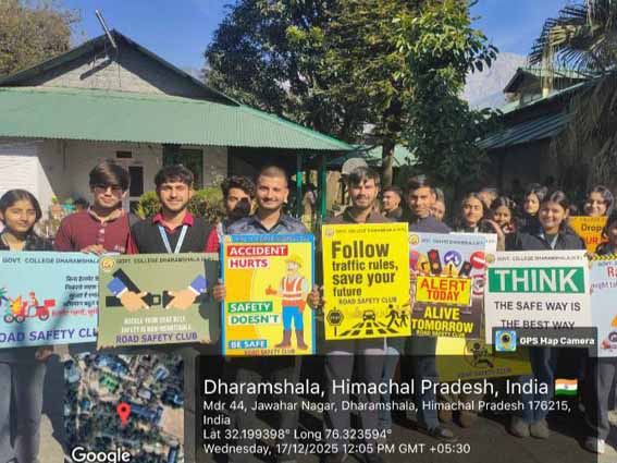 राजकीय महाविद्यालय धर्मशाला में सड़क सुरक्षा को लेकर जागरूकता रैली आयोजित ।