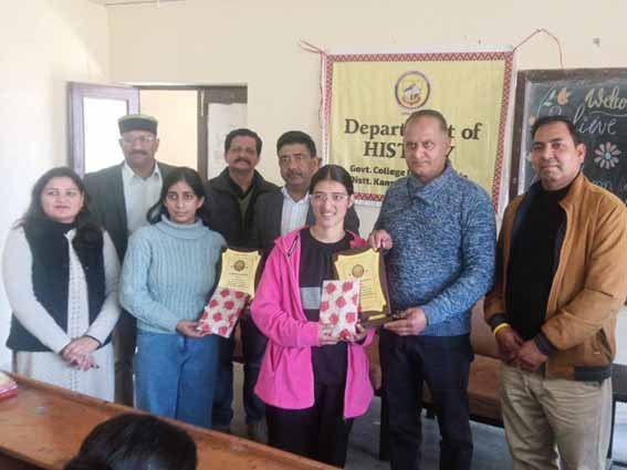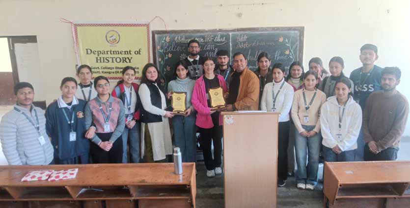 राजकीय महाविद्यालय धर्मशाला के इतिहास क्लब द्वारा महाविद्यालय परिसर में एक गरिमामय समारोह का आयोजन किया गया, जिसमें इतिहास विभाग की हाल ही में यूजीसी नेट–जेआरएफ उत्तीर्ण करने वाली पूर्व छात्राओं को सम्मानित किया गया। इस अवसर पर अदिति सपुत्री रविंदर कुमार) एवं अदिति सपुत्री संगत राम को उनकी असाधारण शैक्षणिक उपलब्धि के लिए स्मृति-चिह्न (मोमेंटो) और उपहार भेंट कर सम्मानित किया गया।