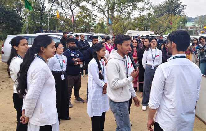 एंटी-चिट्टा अवेयरनेस वॉकथॉन के अवसर पर डिग्री कॉलेज धर्मशाला के रेड रिबन क्लब के विद्यार्थियों ने पुलिस ग्राउंड धर्मशाला में एचआईवी/एड्स के प्रति जागरूकता फैलाने हेतु एक अत्यंत प्रभावशाली और संवेदनशील नुक्कड़ नाटक प्रस्तुत किया। इस महत्वपूर्ण जागरूकता कार्यक्रम की शोभा बढ़ाने के लिए हिमाचल प्रदेश के माननीय मुख्यमंत्री श्री सुखविंदर सिंह सुक्खू जी स्वयं उपस्थित रहे।